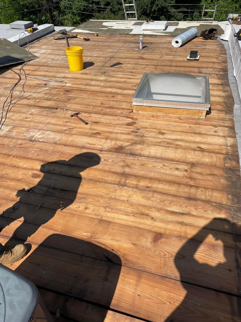 The roof replacement process begins with a thorough inspection to determine if a repair or coating might suffice. If a full replacement is necessary, the team removes existing roofing layers—often multiple layers in DC homes—and inspects the wood decking for any damage. After replacing any compromised decking, they install new underlayment and the chosen roofing membrane .